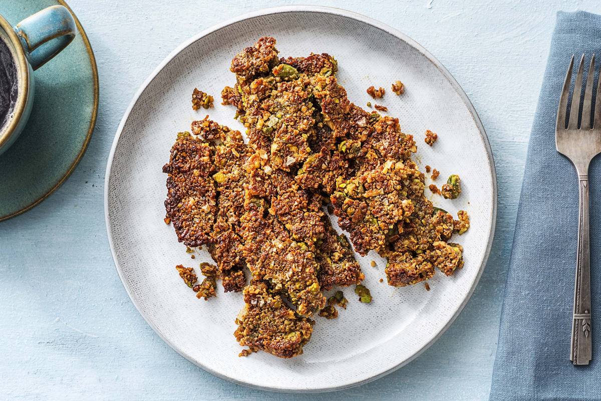 Breek de dadel-notenplak in brokken en serveer bij de koffie. Bewaar overige brokken in een trommel in de koelkast.