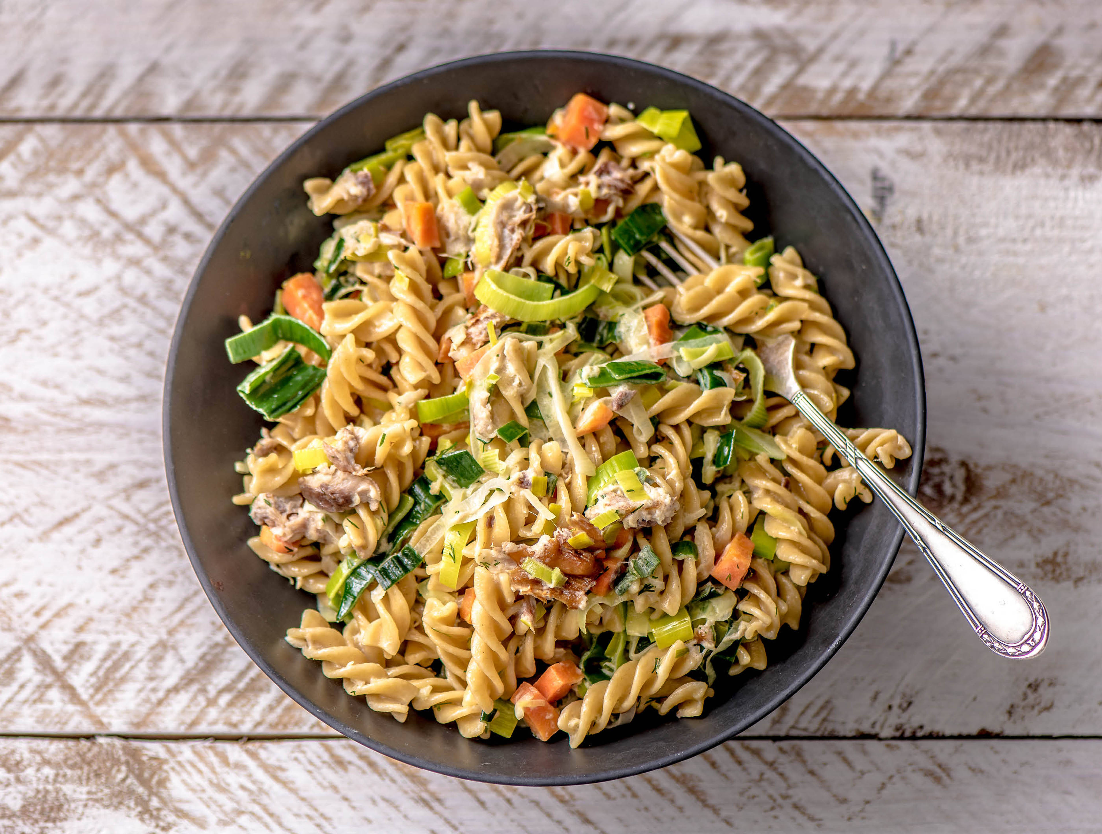 Snijd de citroen in partjes.Verdeel de fusilli over de borden en garneer met een citroenpartje.