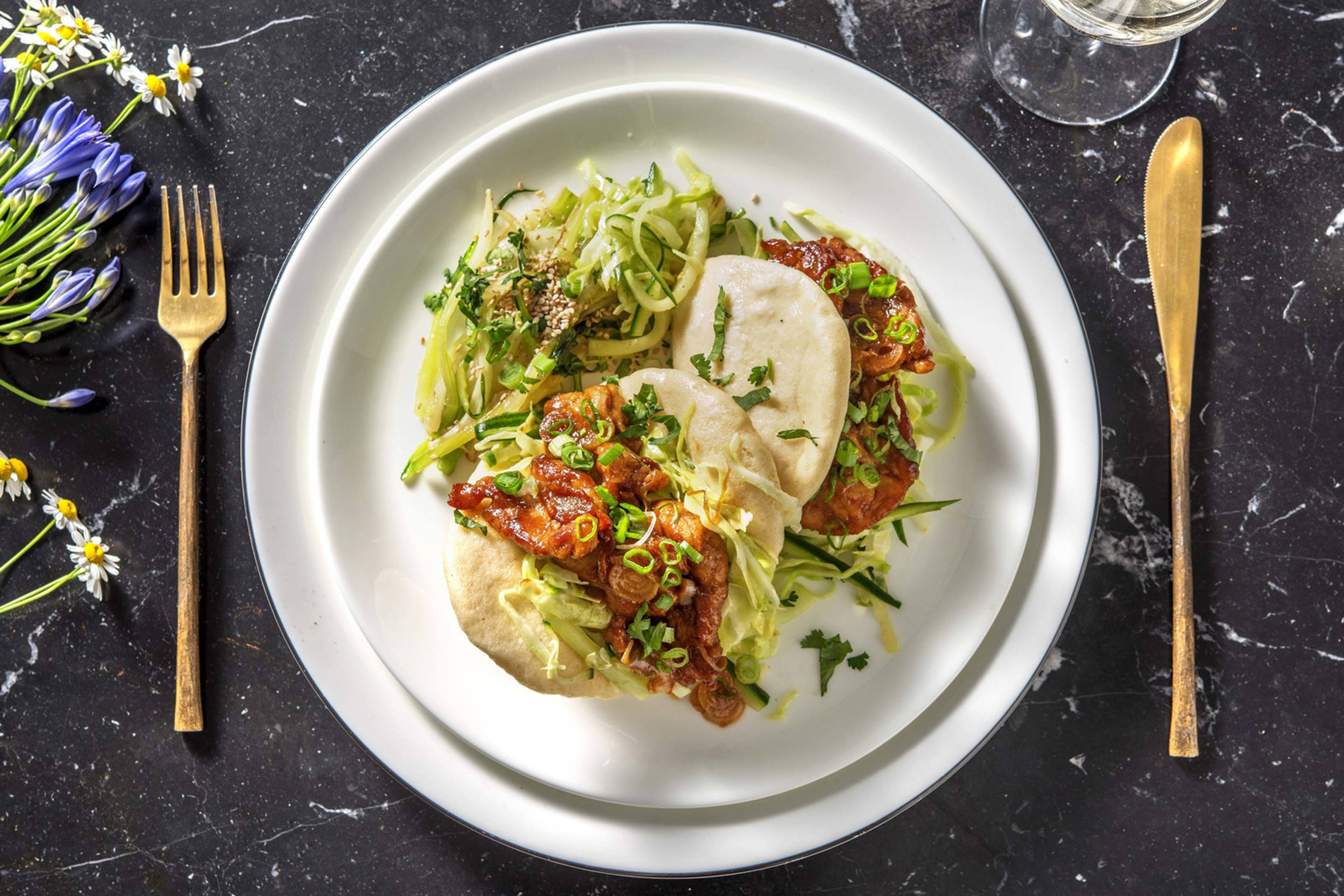 Breng 400 ml water per persoon aan de kook in een pan met deksel. Verhit 1/2 el zonnebloemolie per persoon in een grote wok of hapjespan. Voeg de kippendijreepjes toe en roerbak 2 - 3 minuten op hoog vuur. Bak in de laatste minuut de knoflookpuree mee. Voeg de Oosterse groentemix toe aan de pan en roerbak 7 - 10 minuten op middelhoog vuur.