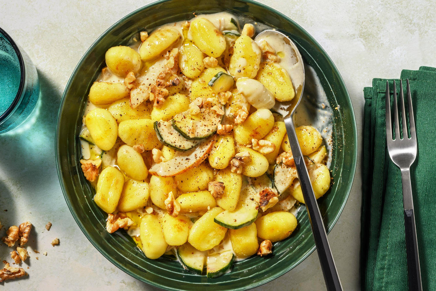Kook ondertussen de gnocchi, afgedekt, in de pan met deksel tot ze boven komen drijven. Giet daarna af en laat zonder deksel uitstomen.