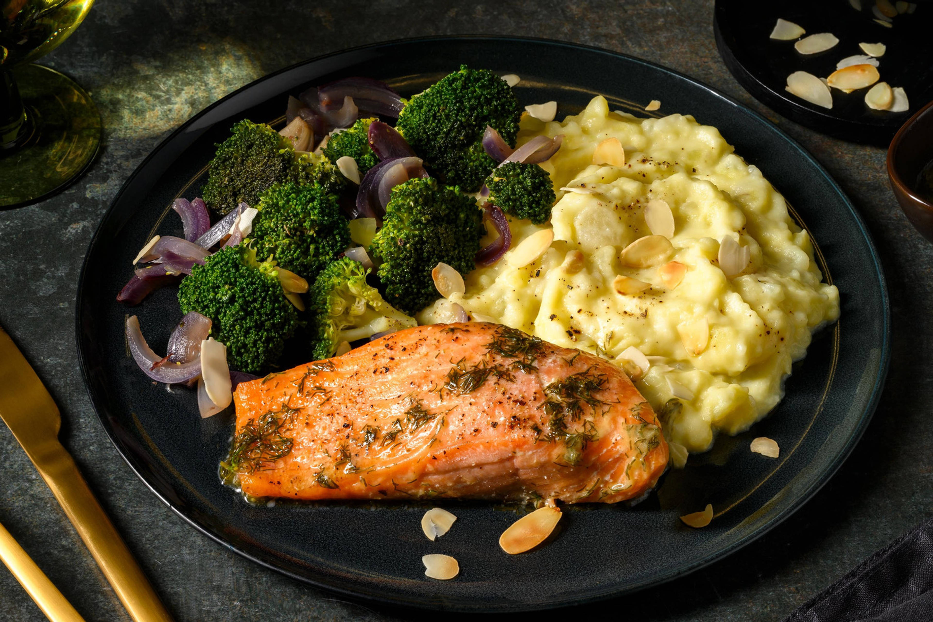 Breng ruim water aan de kook in 2 pannen met deksel voor de aardappelen en broccoli. Snijd de bloem van de broccoli in roosjes en de steel in blokjes. Was of schil ondertussen de aardappelen en snijd in grove stukken.