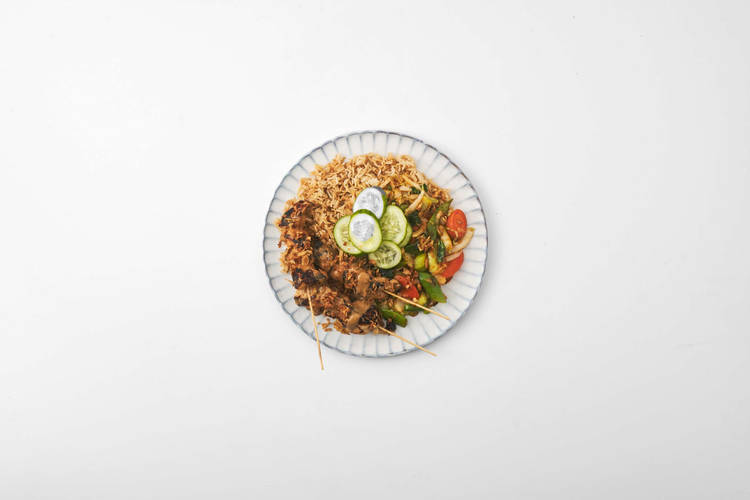 Tip: Je kunt ook een rijsttorentje maken: vul een kleine kom met de rijst en druk goed aan. Zet het bord op de kom en draai om. Haal voorzichtig de kom van de rijst af.