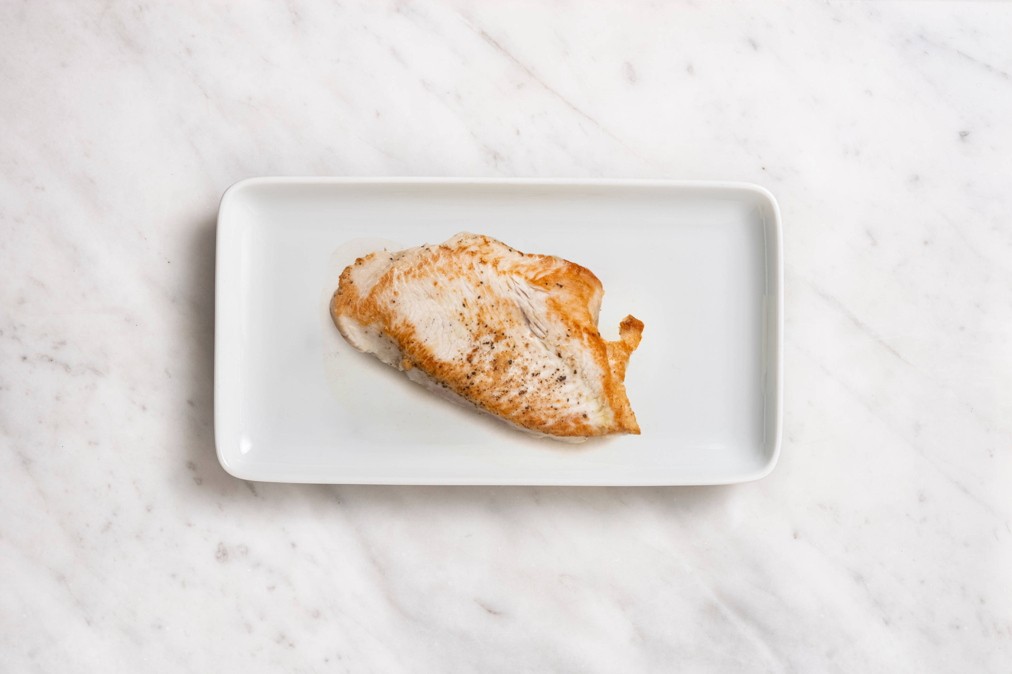 - Verhit een klein scheutje olijfolie in een pan op middelhoog vuur. Bak de kalkoenfilet 10 - 12 minuten, of tot hij gaar is. Breng op smaak met peper en zout.