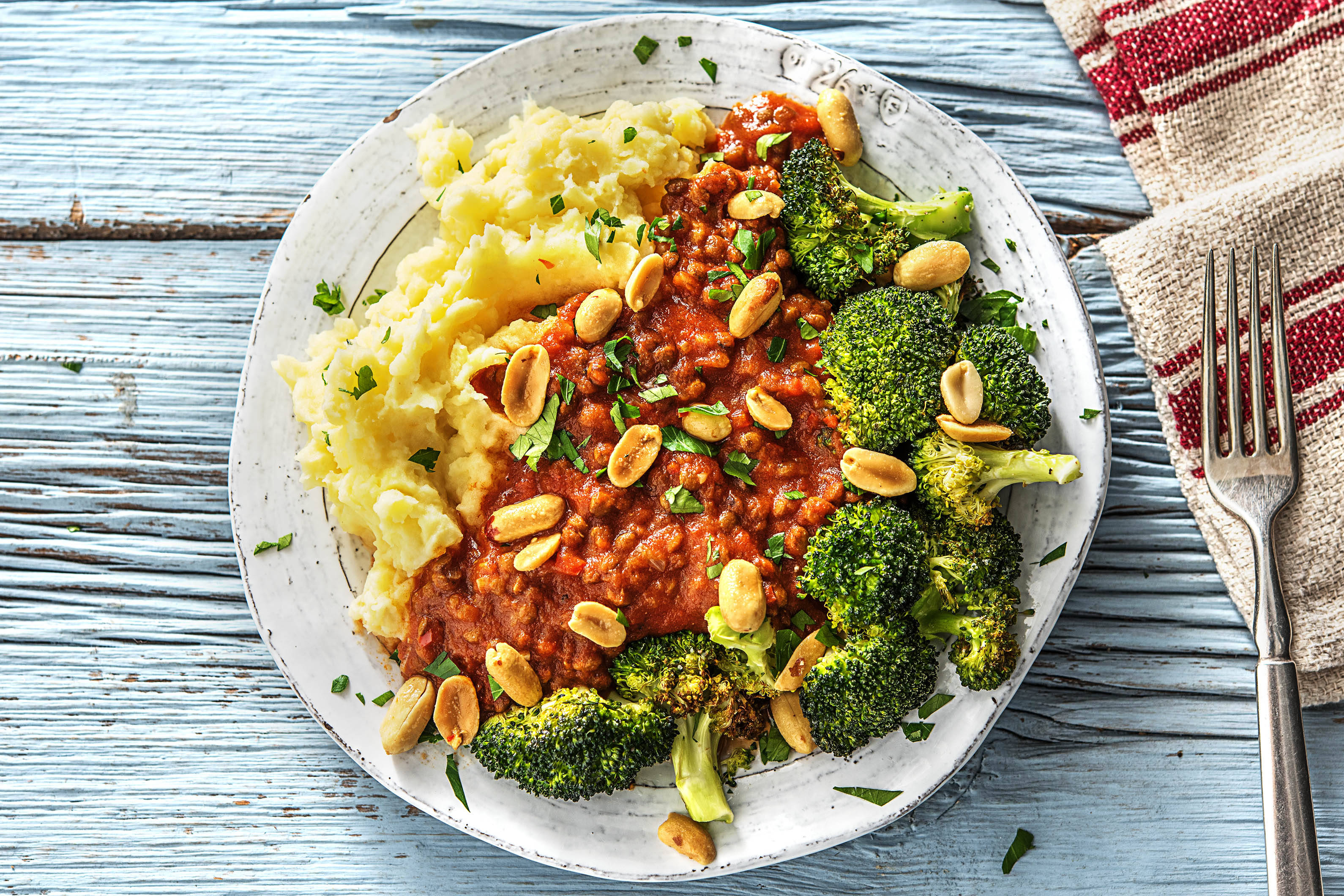- Hak ondertussen de verse bladpeterselie en munt fijn.