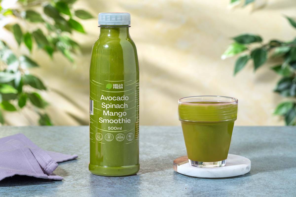 INGREDIËNTEN: 62% appelsap, 13% mangopulp, 8% avocadopulp, 8% spinaziesap, 8% bananenpuree (gepasteuriseerd), 1% citroensap, antioxidant (ascorbinezuur)