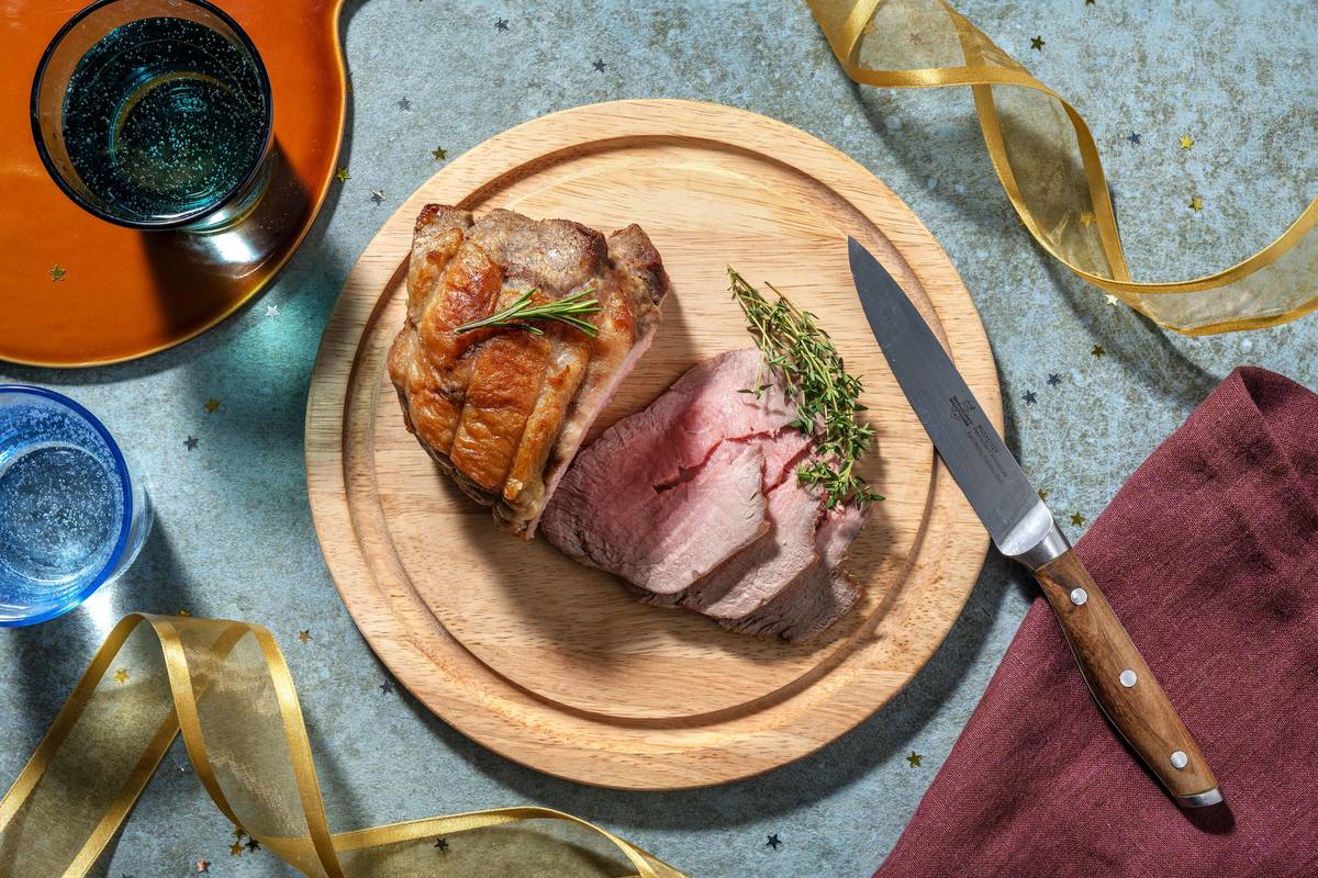 € 26.65 / kg<p><p>INGREDIËNTEN: 97% kalfsvlees, zout, dextrose, witte peper, foelie, paprikapoeder, kummel, kurkuma, komijn, gemberpoeder, venkelzaad, gistextract, emulgator (difosfaten, polyfosfaten). BEWAREN EN GEBRUIK: Gekoeld bewaren (max. 4 ⁰C). Rondom aanbraden en in een voorverwarmde heteluchtoven op 130° C. Nog ca. 40 minuten garen of tot een kerntemp. van 63° C. Laat vervolgens nog 10 min. afgedekt rusten. HERKOMST: Nederland HelloFresh Antwoordnummer 39162 1090 WC Amsterdam Nederland <small>HelloFresh doet er alles aan om te zorgen dat de productinformatie zo nauwkeurig mogelijk is. De recepten van producten worden regelmatig herzien en verbeterd, wat inhoudt dat voedingswaarden, informatie over allergenen (inclusief ‘kan sporen bevatten van’-verklaringen), ingrediënten en andere product details kunnen worden gewijzigd. Controleer bij ontvangst altijd de productetiketten voordat je het product consumeert. Vertrouw niet uitsluitend op de hier verstrekte informatie. Voor specifiek advies over een product kan je contact opnemen met onze klantenservice. Voor producten die niet het HelloFresh-merk hebben, is het ook mogelijk om rechtstreeks contact op te nemen met de fabrikant.</small>