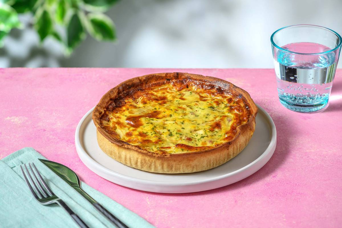 Quiche met witte asperges, ham en ei