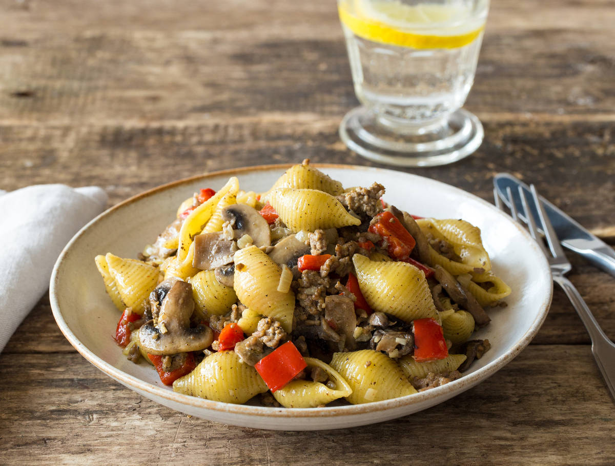 De Italiaanse conchiglie, op ambachtelijke wijze bereid door onze pastaboer Fulvio, is een pastasoort met een schelpvorm. Omdat de schelpjes van binnen hol zijn, blijft de saus er lekker goed in zitten. Het kipgehakt met Italiaanse kruiden en de frisse crème fraîche komen hierdoor extra goed tot hun recht.