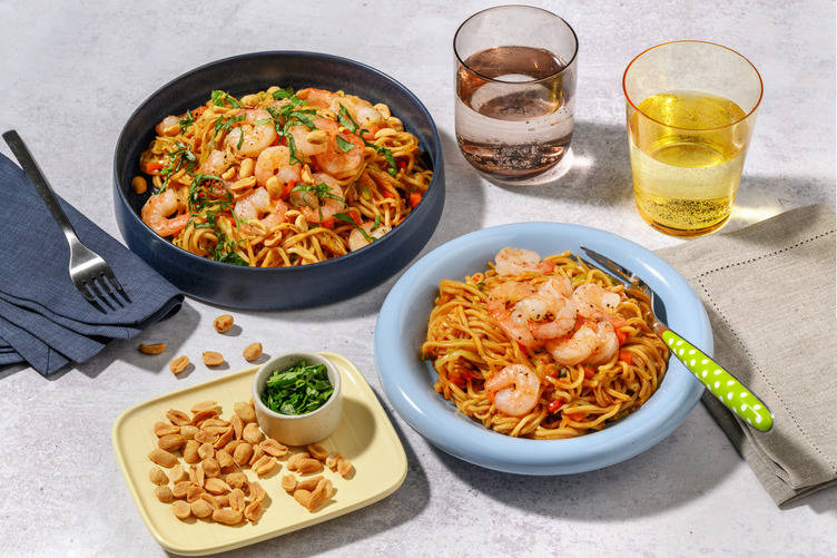 Kindvriendelijke teriyaki noedels met garnalen en kool