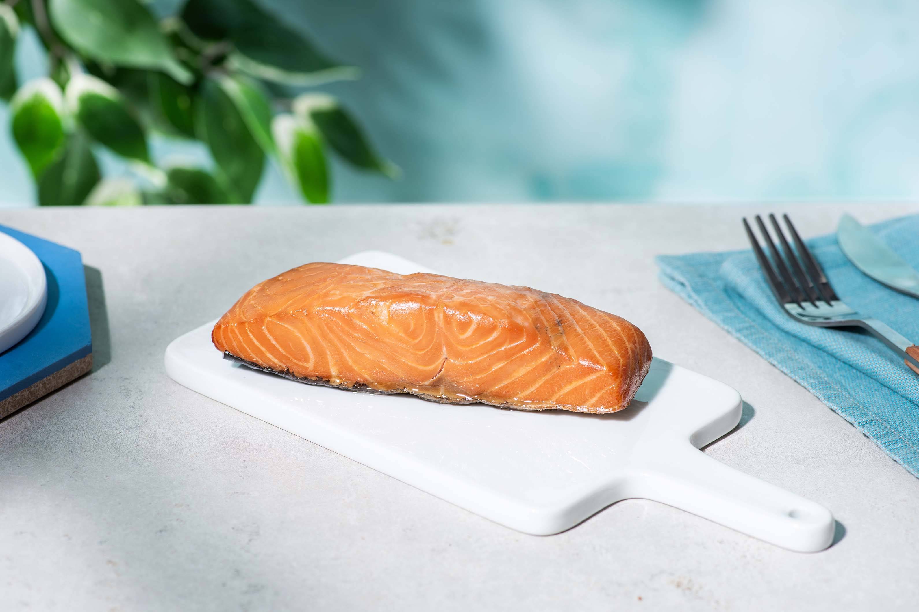 With salmon you can easily see if it is done, without having to cut the fish. Press it gently with your fork. When the meat falls apart, the salmon is done. When the salmon is done is, it is smart to remove it from the pan as quickly as possible. This will prevent it from drying out and preserve the maximum flavor of the fish.
